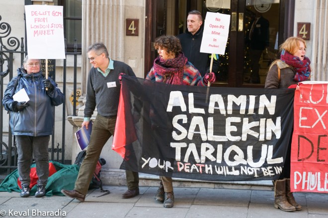 “We remember and respect Al Amin, Mohammad Saleqin and Tarikul Islam. These three children were killed on 26 August 2006 when a paramilitary force opened fire, in favour of the British mining company, during a nonviolent demonstration of an estimated 80,000 people against the eviction of 130,000 people in Phulbari to make for a 572-million ton open cast coal mine. We will continue to call on the UK government and Bangladesh government to take legal action against GCM Resources, to de-list GCM from London Stock Exchange, and ban mining in Bangladesh.”