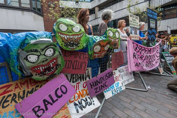Foil Vedabta demo against Vedanta AGM at Barbican Aug 5th 2016. Photocredit: Peter Marshall Published August 9, 2016 at 600 × 399 in When will Vedanta be ashamed for their misdeeds? ← Previous Next →