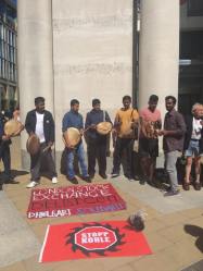 Monday, the 14th August, was apparently a bright day for the communities oppressed by a notorious British mining company, called Vedanta Resources. Protests held by communities in Zambia, India and London while activist-shareholders, representing the communities, were interrogating the Vedanta board at their Annual General Meeting at the Lincoln Centre in Lincoln Inn Fields in London. Although residents of Lincoln Inn Fields have seen lousy weather with gusty wind and non-stop rain across London for weeks before Monday, the gorgeous sun has shown up to brighten the colourful and powerful protest of communities against Vedanta Resources last Monday. Loud and theatrical protest was held outside the AGM of the British mining company, for three hours, accusing the company of major environmental and human rights abuses across its operations. I was one of the late comers though there were numerous protesters with noisy instruments and colourful banners and placards till late afternoon who greeted me in smiling face. They said, as were determined, that: “We wouldn’t leave the venue hitherto the miners are out of the block”.