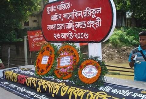 Homage paid to victims at Al-Amin, Salekin and Tariqul’s memorial in Phulbari on Sunday, 26 Aug 2018. Photocredit: Nuruzzaman
