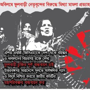 GCM does not have a valid contract with Bangladesh for coal mining but they are selling shares in the name of Phulbari project. Instead of leaving Bangladesh, the company has filed multiple cases against 26 key indigenous organiser’s, local leaders, farmers, small scale business entrepreneurs and students who opposed the mine in Phulbari. The arbitrary charges were formed on 25 July in 2016 at the Dinajpur Magistrate Court, which has been traumatising and abusing all those fighting the fraught.