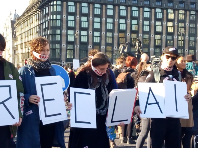 Rebellion Day witness by Rumana Hashem in Westminster Bridge on 17 Nov 2018. Photocredit: Peter Marshall