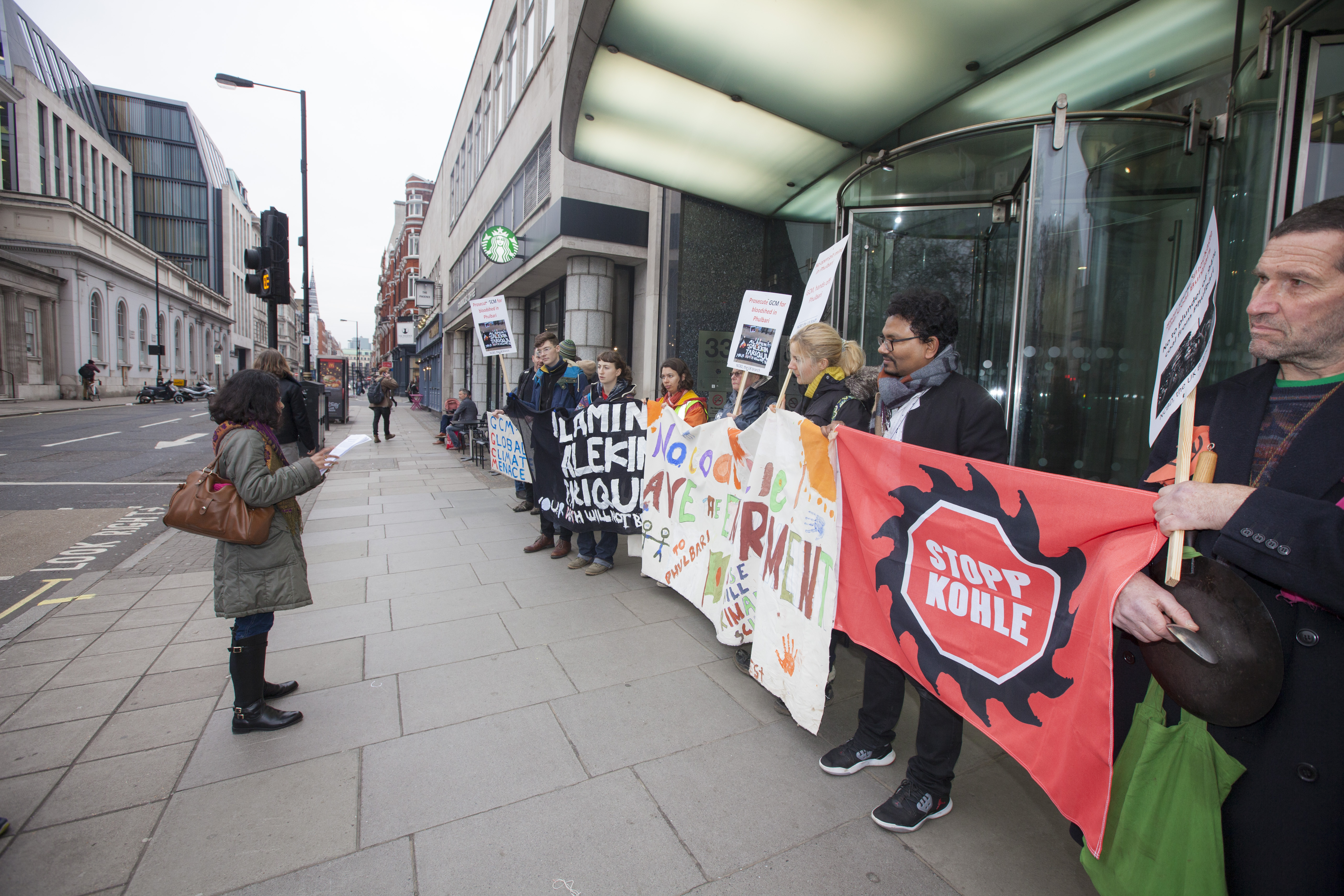 Published December 29, 2018 at 5616 × 3744 in PRESS RELEASE: London Protesters Disrupted GCM’s AGM ← Previous Next → Rumana Hashem of CPRB and PSG read out a petition by 134 community leaders from Phulbari. Friday, 28 December 2018, 33 Cavendish Square, London. Copyright: Paul Dudman