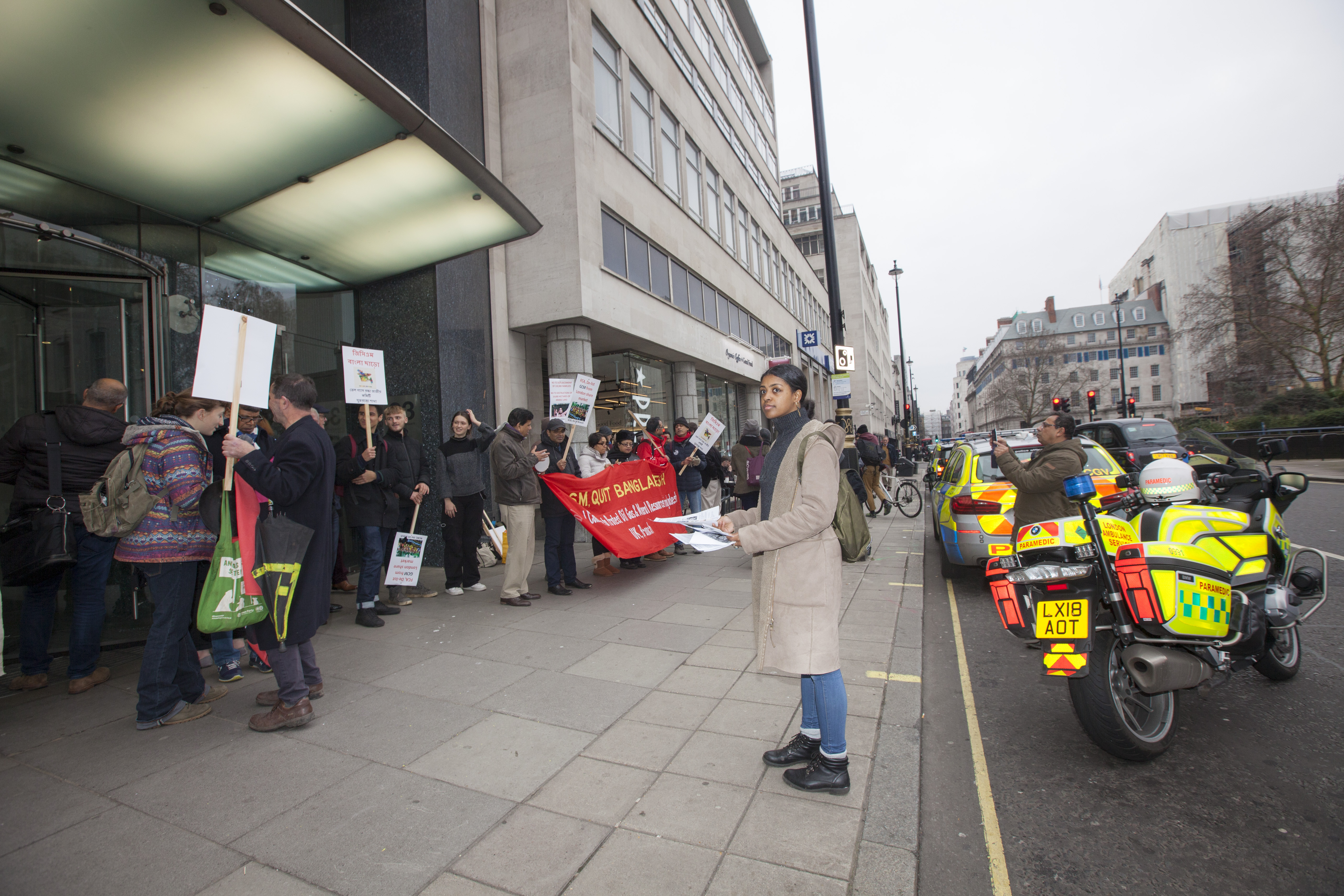 Published January 2, 2019 at 5616 × 3744 in PRESS RELEASE: London Protesters Disrupted GCM’s AGM ← Previous Next → The protest outside of GCM’s AGM held on Friday 28 December 2018. Photo: Golam Rabbani