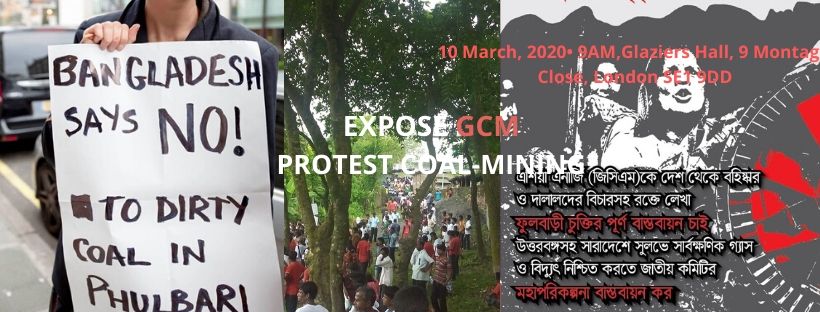 EXPOSE GCM, Protest COAL-MininG- facebook flyer Published March 9, 2020 at 820 × 312 in PRESS RELEASE:Protesters in London and Bangladesh oppose AGM of GCM Resources Plc ← Previous