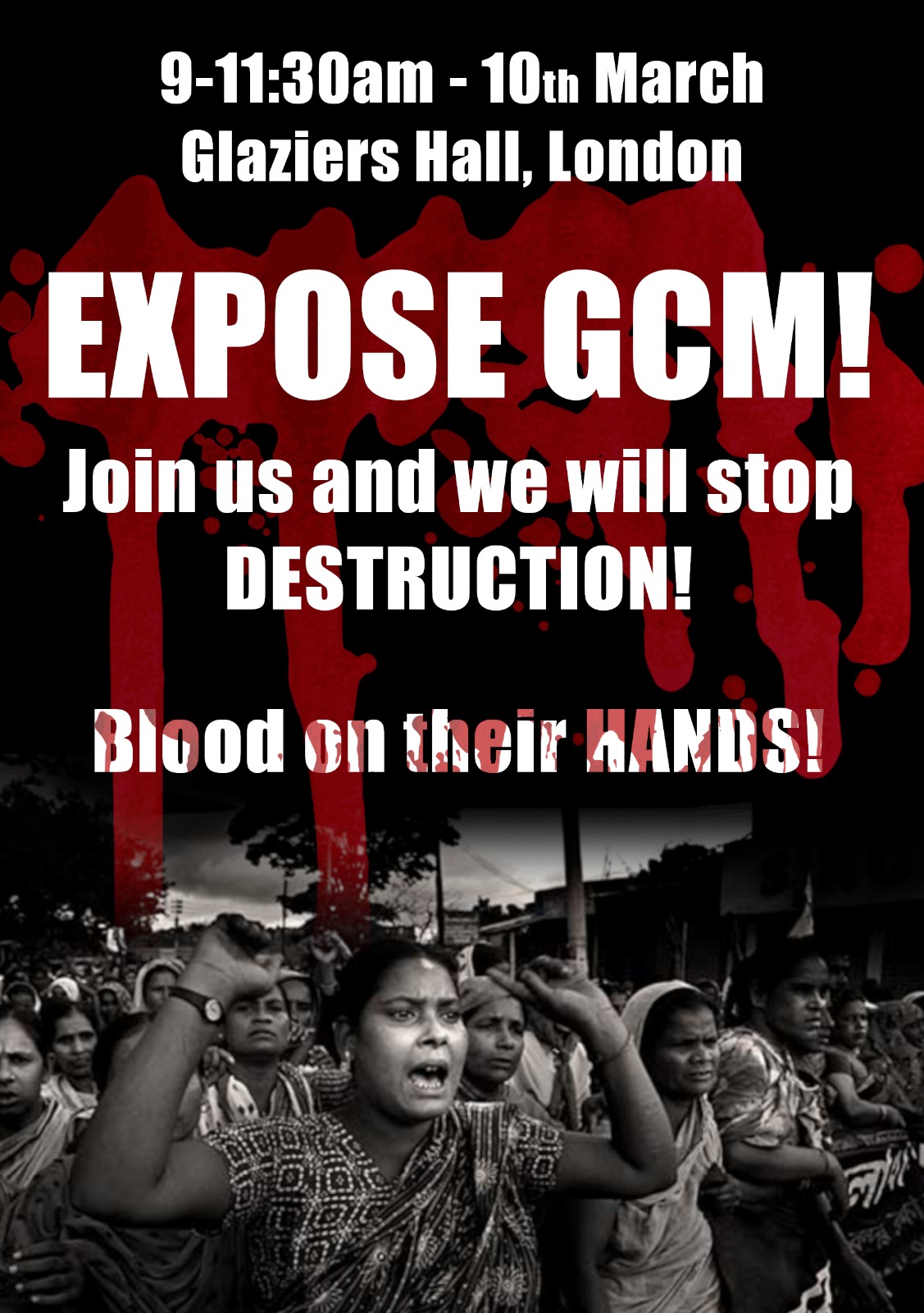 Flyer GCM AGM march 2020 Published March 9, 2020 at 1127 × 1600 in PRESS RELEASE:Protesters in London and Bangladesh oppose AGM of GCM Resources Plc ← Previous Next →