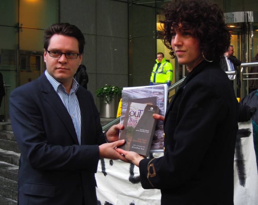 The meeting began by a rather long introduction by Deepak Kumar, who went into immense detail for around ten minutes over the instructions for use of the handset provided for voting. It followed by the company Chairman, Anil Agarwal’s long speech followed by Vedanta CEO, Tom Albanese’s ever bizarre presentations. In their “sustainable development” report both Mr. Agarwal and Tom Albanese stated that “the priority is”, on the one hand, to focus on “zero harm” and “to ensure zero discharge and waste”, on the other hand. Note this is a mining company that is known as notorious for abuse in India and Zambia. Agarwal insists, even if the company has been causing colossal problems which has landed them in the court, ‘there will be incremental technical improvements that will make things alright eventually’. As Andy Whitmore notes correctly, ‘his slumber is assured by the promise of “zero harm” which is the most peculiar fashion distressing large extractive corporations, or those financing them. But question is: how can a company displacing people to rip up the earth on a vast scale do “zero harm”?